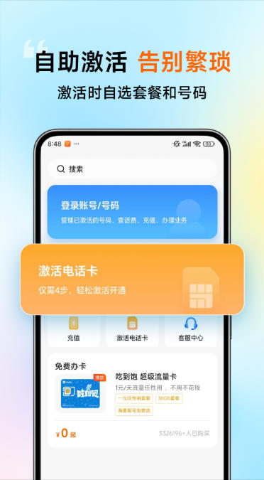 手机号购买:提供多种手机号套餐选择,包括任我行电话卡(低月租套餐,不使用不产生费用)、吃到饱电话卡(每天仅需1元,可任性使用流量)等,满足不同用户的通讯需求。