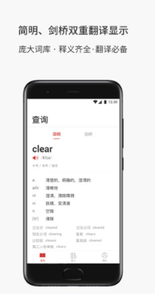 权威词典:内置《简明词典》与《剑桥英汉双解词典》,覆盖小学至大学、商务英语、GRE、托福、雅思等全阶段词汇需求,释义全面且权威。