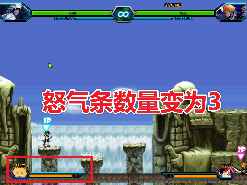 按 U 键(玩家 1)或 3 键(玩家 2)爆气,消耗 1 格气,短时间内提升攻击力并解除部分控制。