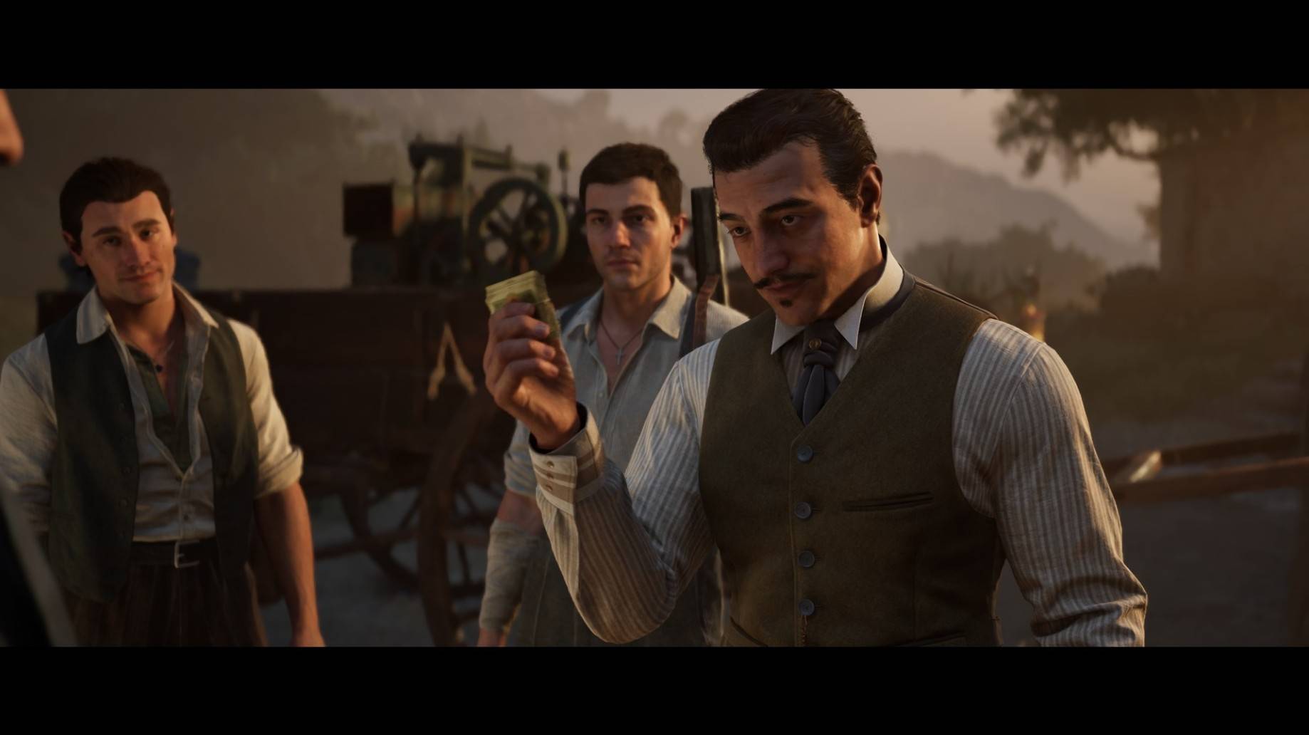 1. 复古西西里风情与沉浸式场景:以1900年代西西里岛为蓝本,完美还原了矿场、酒庄、乡村小镇、地下墓穴甚至歌剧院等多元场景,建筑风格、服饰装扮、街头氛围均贴合时代背景。游戏通过细腻的光影效果与环境细节,搭配全西西里语对白,让玩家仿佛穿越回世纪初的地中海岛屿——矿坑中飞舞的煤尘、酒庄里浓郁的葡萄香气、小镇上石板路的斑驳痕迹,每一处细节都强化了沉浸感。