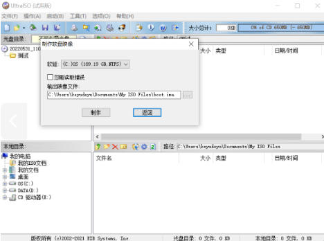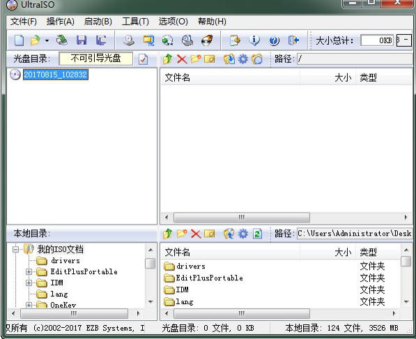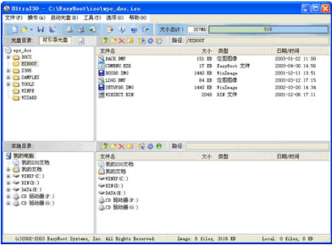 双窗口统一用户界面:UltraISO 采用双窗口界面设计,左边显示本地文件,右边显示映像内容。这种布局使得用户可以方便地通过拖放操作来添加、删除、重命名文件或文件夹,大大简化了操作流程。同时,这种界面设计也使得用户能够更直观地管理映像文件。